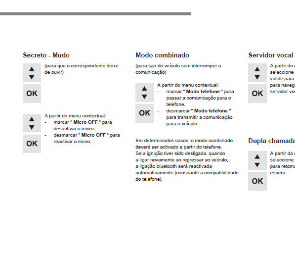 | O telefone Bluetooth não é compatível com o sistema. | Pode verificar a compatibilidade do seu telefone em www.citroen.pt (serviços) | |