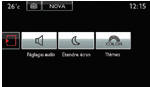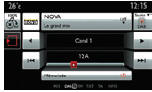 Atalhos: através de teclas tácteis situadas na barra superior da tablete táctil, é possível aceder directamente à selecção da fonte sonora, à lista das estações (ou dos títulos consoante a fonte).