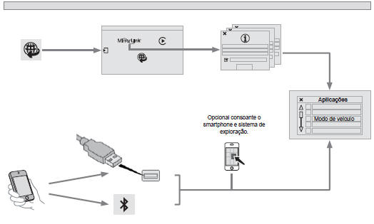 Executar determinadas aplicações do seu smartphone através de "MirrorLink" ou CarPlay".