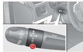 B. Manípulo de inversão das luzes: puxe-o para si para alterar o acendimento das luzes de cruzamento/ luzes de estrada.