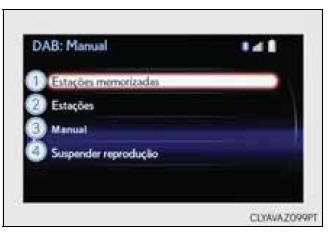 Se pressionar a tecla "RADIO" o ecrã superior do rádio é exibido a partir de qualquer ecrã da fonte selecionada.