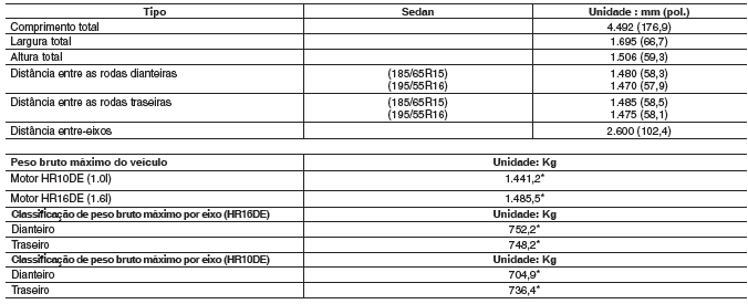 * Os valores do peso bruto total e peso bruto por eixo variam de acordo com a versão do veículo.