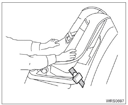 4. Após instalar o sistema de proteção infantil, teste-o antes de colocar a criança no local. Empurre-o de um lado para o outro segurando o assento perto da fixação do sistema LATCH. O sistema de proteção infantil não deverá mover mais que 25 mm (1 pol.), de um lado para o outro. Tente dar um puxão para frente e verifique se o cinto segura o sistema de proteção infantil no lugar. Se o sistema de proteção infantil não estiver seguro, aperte o cinto o quanto for necessário, ou coloque o sistema de proteção infantil em outro assento e teste-o novamente. Tente usar um sistema de proteção infantil diferente. Nem todos os sistemas de proteção infantil servem em todos os tipos de veículos.